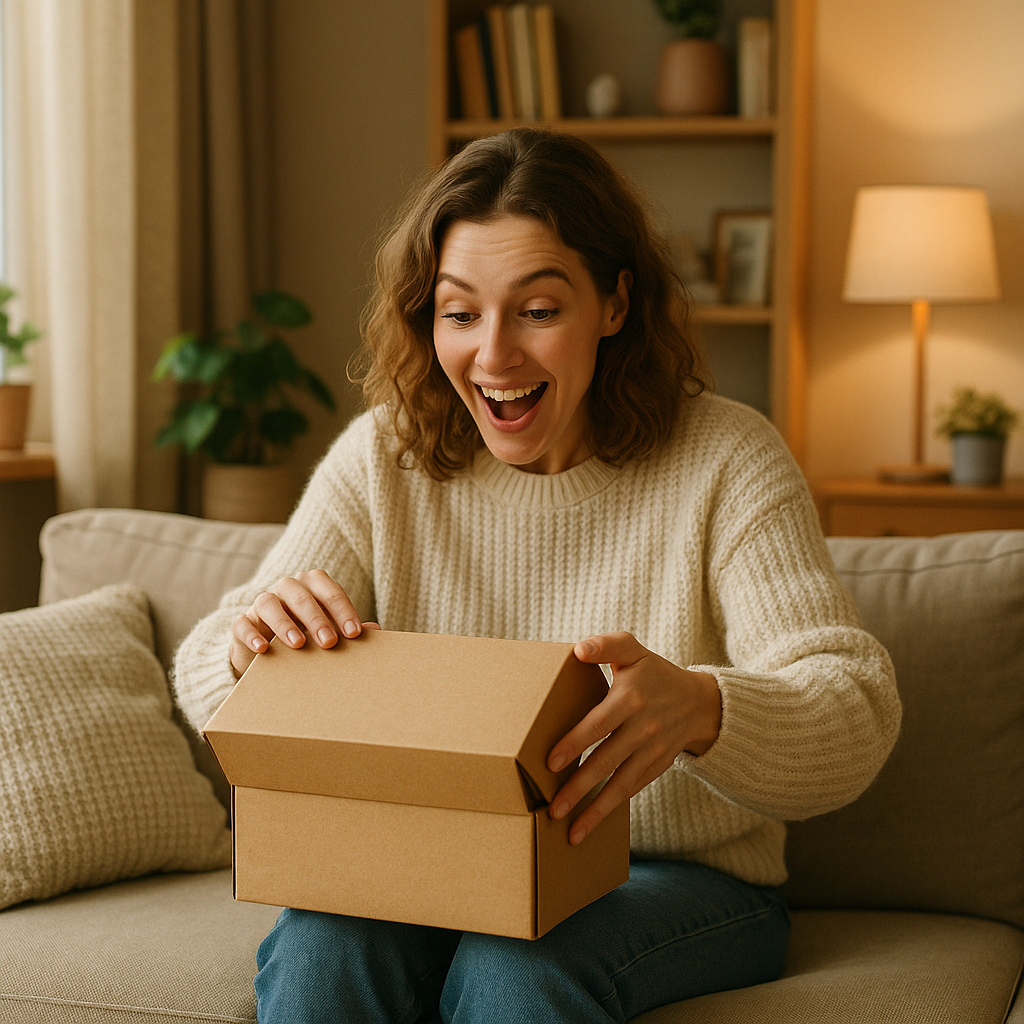 Otrzymujesz paczkę pod drzwi – pięknie zapakowaną, z materiałami, instrukcją i czułością.
